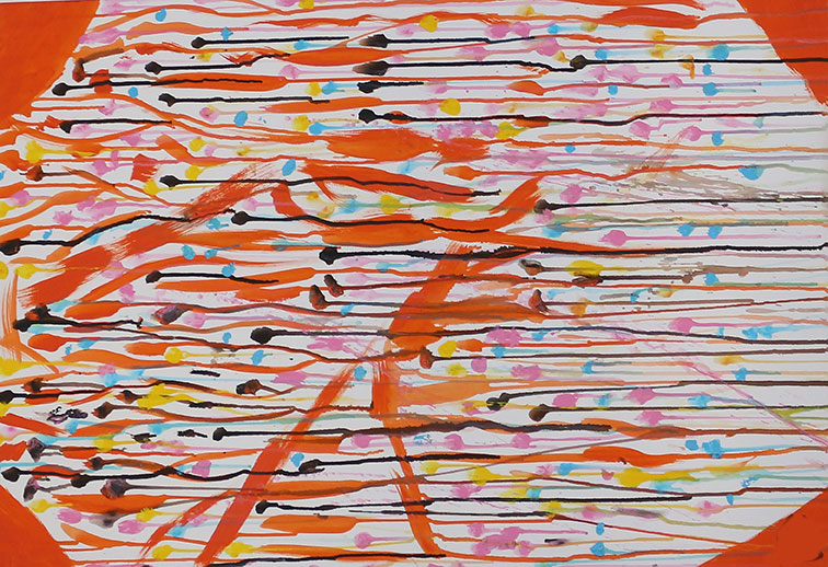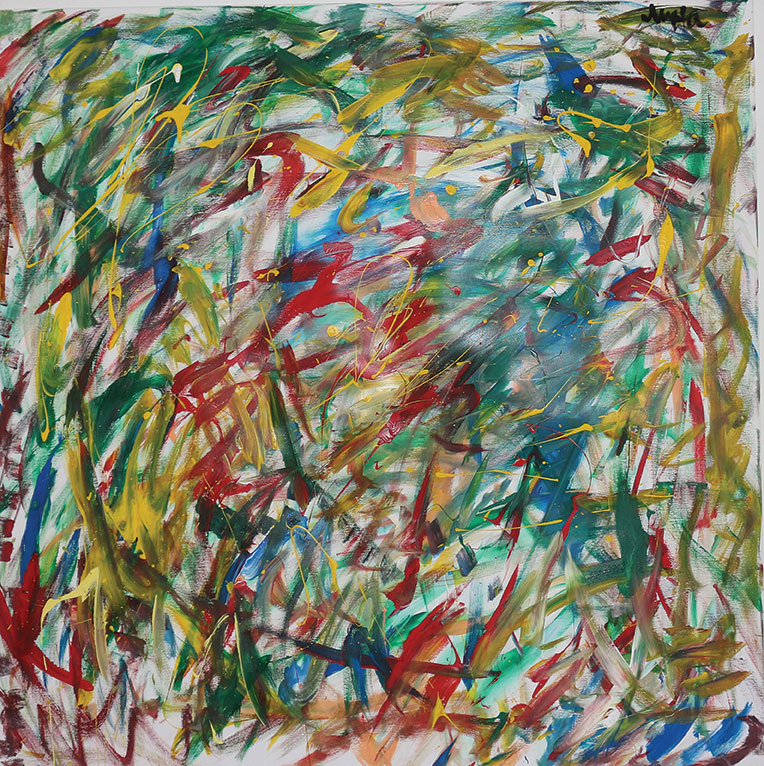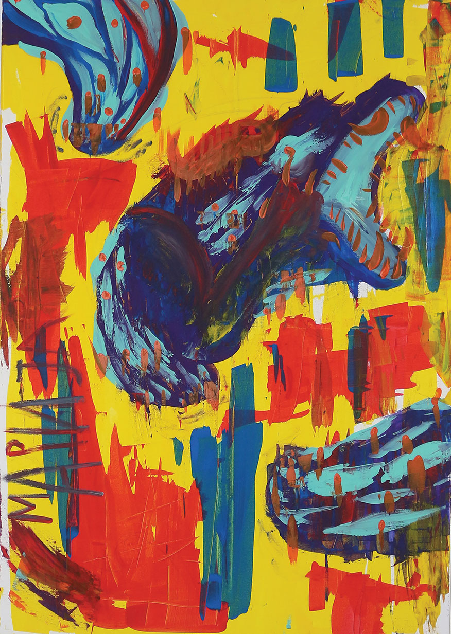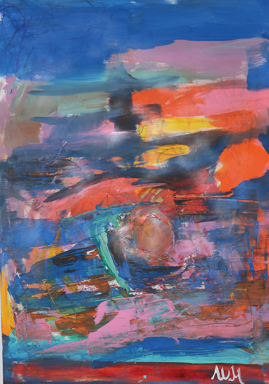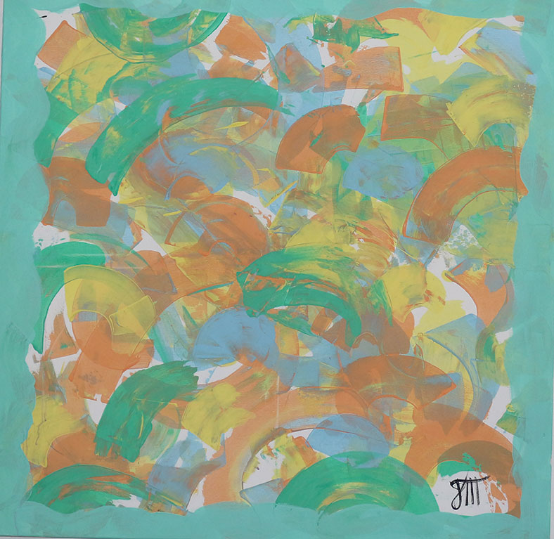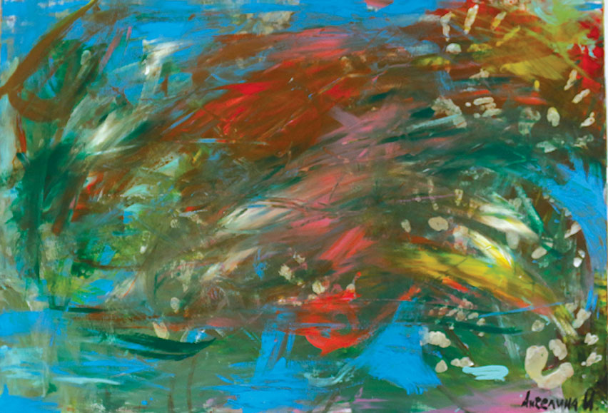 Кога ја цртав оваа слика, само сакав да побегнам од сè. Од гласните мисли, од обврските, од чувството дека морам да бидам нешто. Зелената и сината ми дојдоа како здив, како свежина после долга бура. Жолтата и портокаловата ми ги вратија сеќавањата на топли денови, на сонце, на мир.