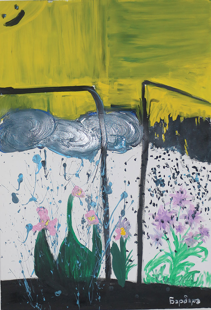 Го гледам ова платно и во него ја чувствувам онаа носталгија што нè боли, ама сепак не ја пуштаме да замине. Две половини на едно време, левата страна е детството, со боите на сончевите денови, цвеќињата што растат високо, и дождовите што тогаш ги сакаше затоа што ти дозволуваа да ја газиш калта без грижа. Десната страна е сеќавање што полека бледее, како стара фотографија. Цветовите се разлеани, а дождот е поситен, студен.