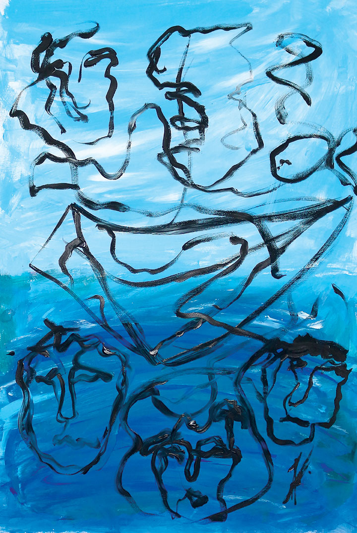 Моите емоции често се преплетуваат и се појавуваат едни над други, како бранови во море. Лицата – радост, тага, смиреност и немир – заедно го создаваат мојот внатрешен свет. Водата е движење, длабочина и промена. Емоциите не треба да ги потиснуваме, туку да ги прифатиме како дел од нас.