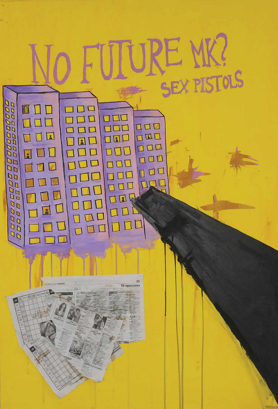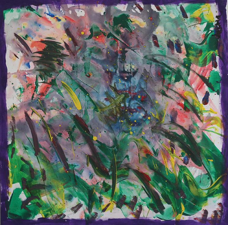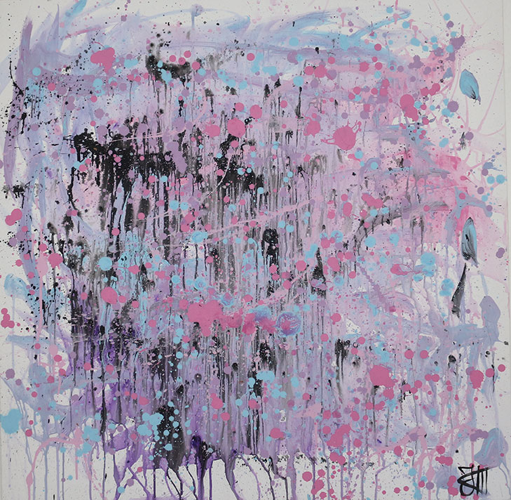 Оваа слика ја направив кога чувствував дека ќе пукнам. Бојата само ја фрлав, без план, без мислење. Виолетовата ми е тага. Црната – стравот што не го кажувам. Розовата и сината се тие делови од мене што сепак сакаат љубов, внимание, нежност.