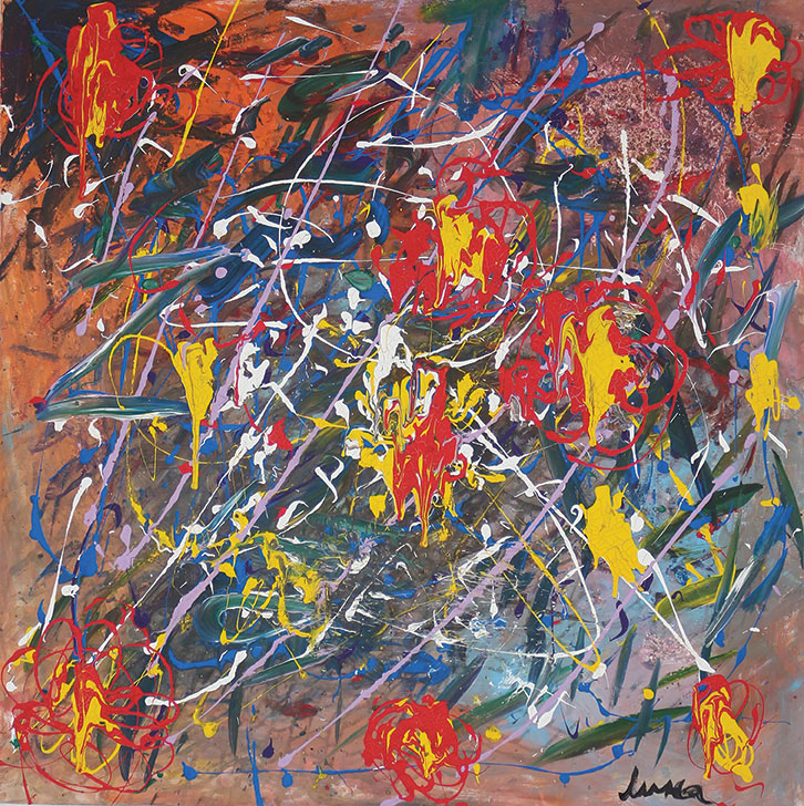 Постојаната борба меѓу збунетоста и потребата за самодоверба… Неизедначените потези и контрастите меѓу темните и светли бои ја изразуваат тензијата меѓу несигурноста и стремежот кон стабилност. Во центарот на композицијата се наѕира круг, како јадро или јасен фокус, кој е всушност јадрото на личноста која и покрај внатрешниот метеж, бара своја сила.